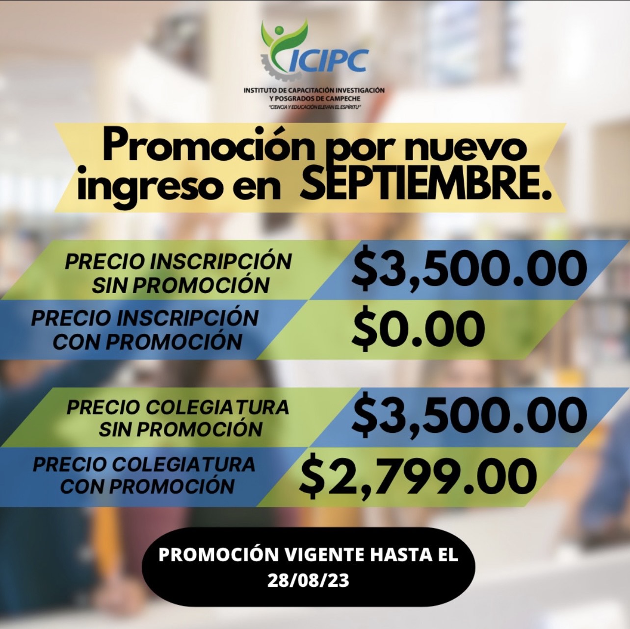 Pregunta por las promociones vigentes con tu asesor educativo.